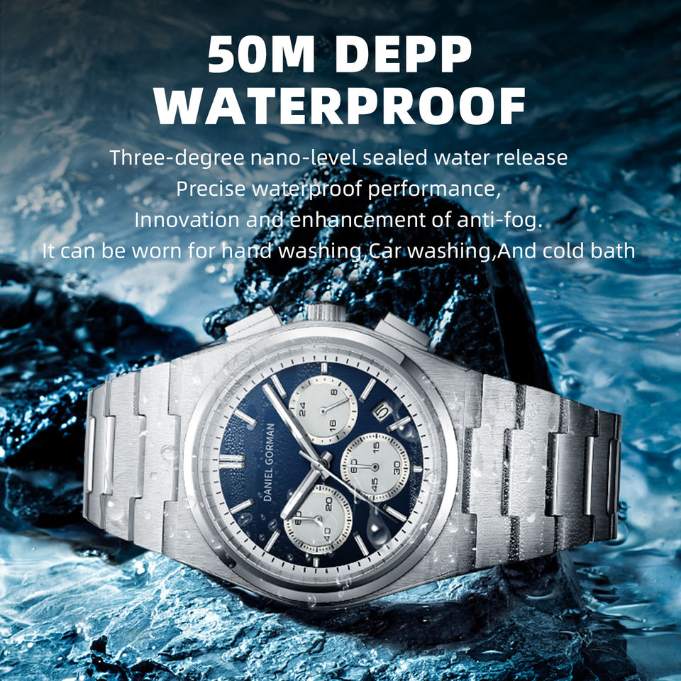 แฟชั่นนาฬิกาลำลองสำหรับผู้ชายปฏิทินสายสแตนเลสผู้ชายชีวิตประจำวันกันน้ำส่องสว่างนาฬิกาควอทซ์รีโลจ