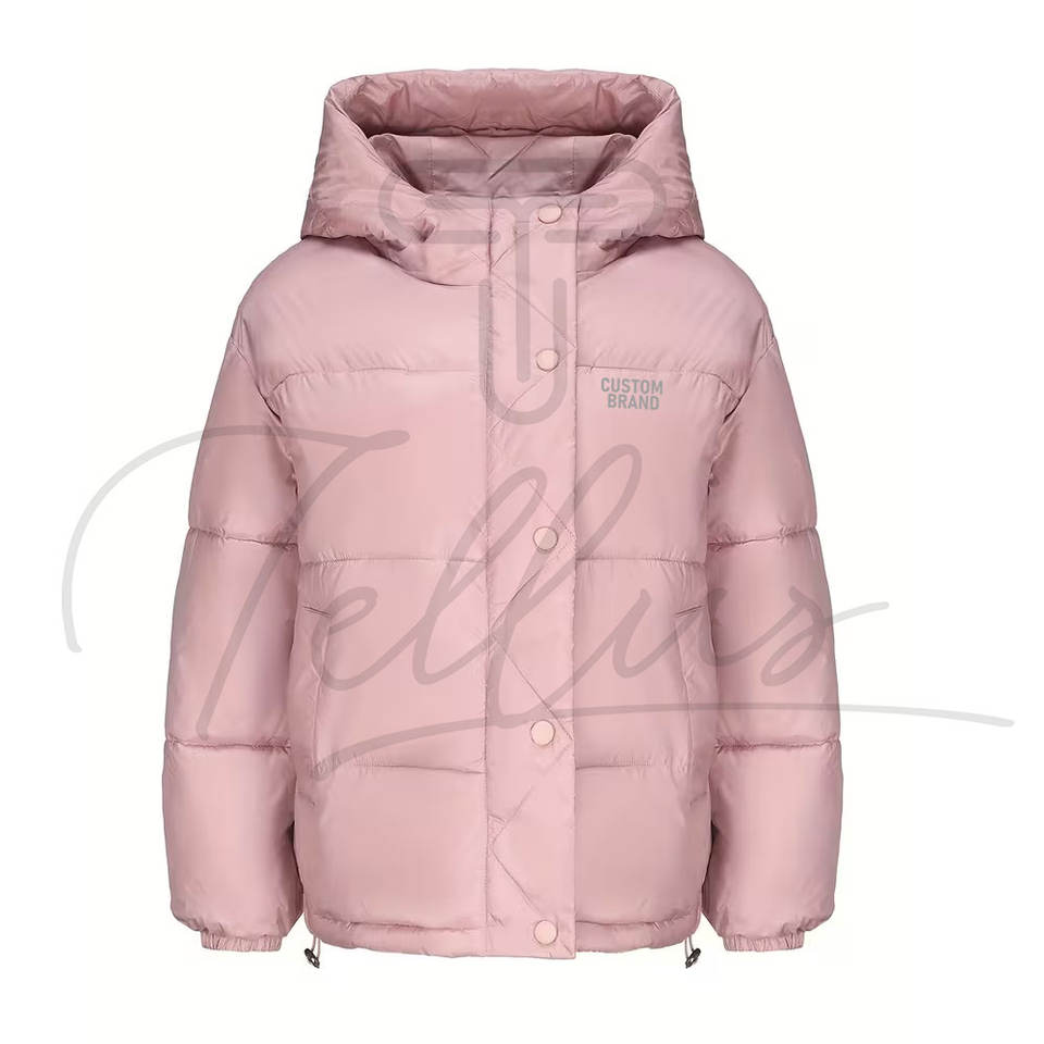 เสื้อแจ็คเก็ตแฟชั่นลำลองสำหรับผู้หญิง แบบถักโครเชต์ กันน้ำ มีฮู้ด ทรงบับเบิ้ล ไซส์พลัส สำหรับฤดูหนาว เงางาม บริการ OEM