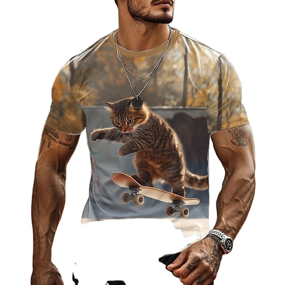 เสื้อยืดแฟชั่นพิมพ์ลายแมว3D สำหรับผู้ชายผู้หญิงเสื้อลำลองทรงหลวมเสื้อยืดแขนสั้นสำหรับฤดูร้อน2025