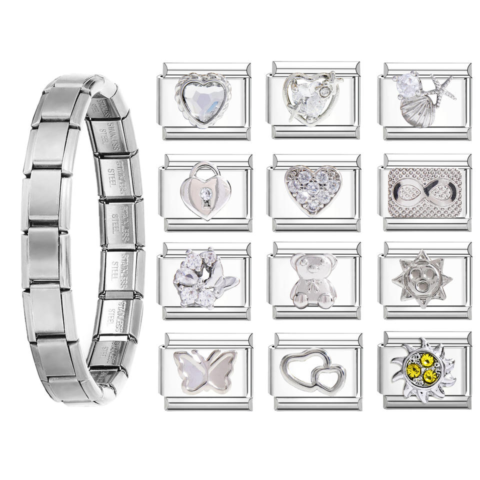 ชุดกำไลข้อมือแฟชั่น สแตนเลสสตีล แบบประกอบเองได้ ประดับคริสตัลและจี้เพชรเทียม สำหรับเป็นของขวัญ เครื่องประดับสำหรับทุกเพศ