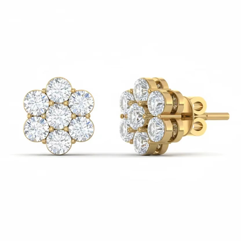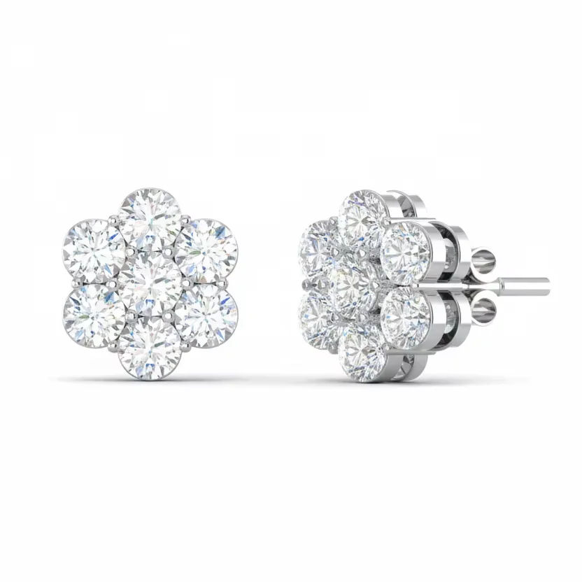 ต่างหูแฟชั่นคลาสสิก เงินแท้ 925 ชุบโรเดียม ทอง 14K ประดับเพชรโมอิสซาไนต์ทรงมงกุฎ พร้อมเพชรทรงบริลเลียนต์ 14 เม็ด