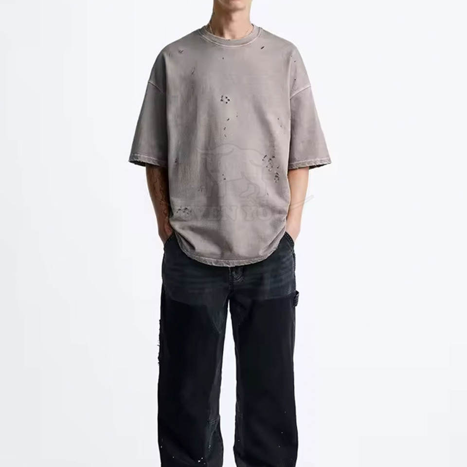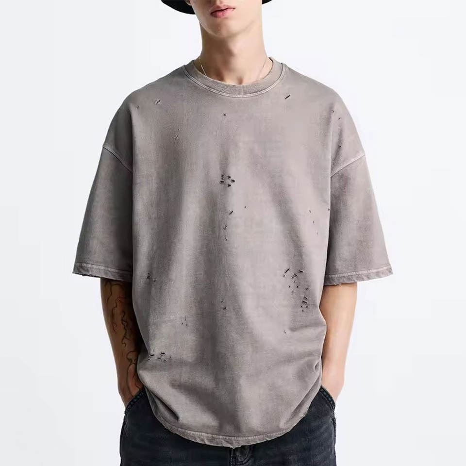 เสื้อผ้าแฟชั่น เสื้อยืดผู้ชายแบบดิสเทรสสั่งทำพิเศษ ออกแบบเองได้ เสื้อยืดแขนยาวผู้ชายแบบดิสเทรส
