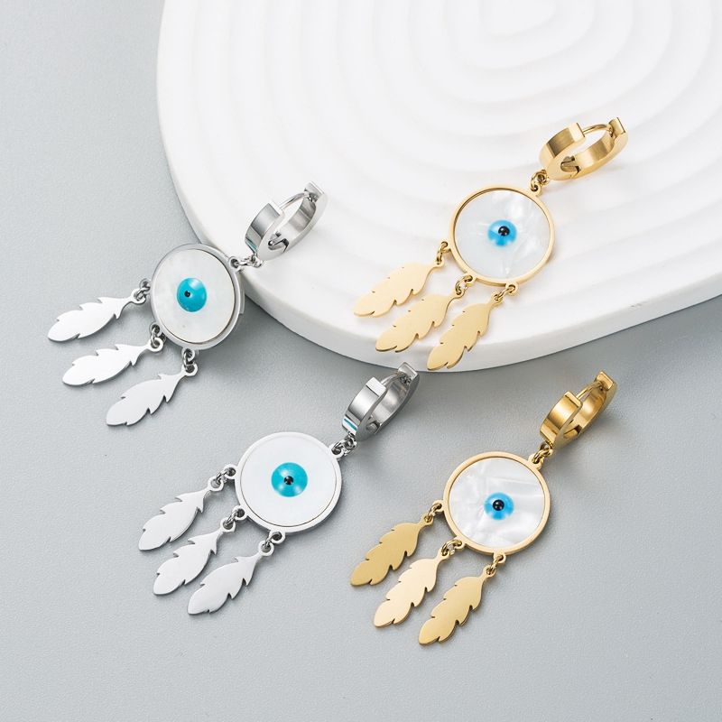 แฟชั่นมะพร้าวเชลล์ห่วงต่างหูสแตนเลสต่างหูตา