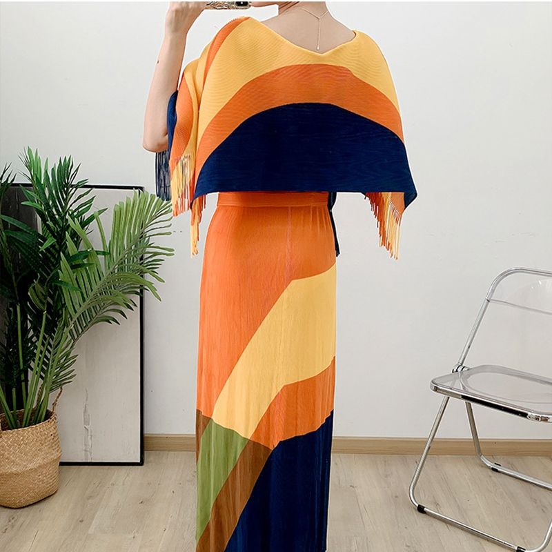 เดรสผ้าทอลายจีบแต่งพู่สีตัดกันแฟชั่นสำหรับผู้หญิง ปี 2025 รุ่นใหม่ ซักได้ ชุดคลุมยาวแบบแม็กซี่ จัดส่งรวดเร็ว