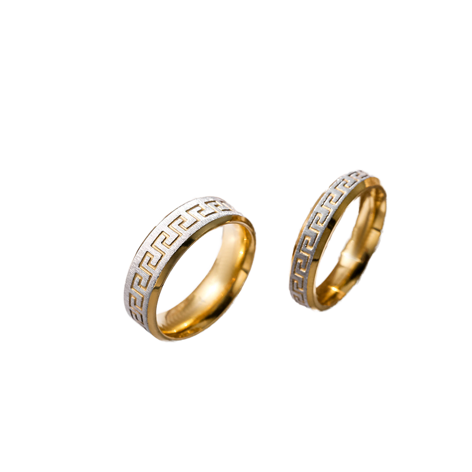 แหวนคู่แฟชั่น สแตนเลส 4 มม. 6 มม. ลายกำแพงเมืองจีน ประดับเพชรซิคอน สลักลาย ชุบทอง 18K แหวนทันสมัยสำหรับทุกเพศ
