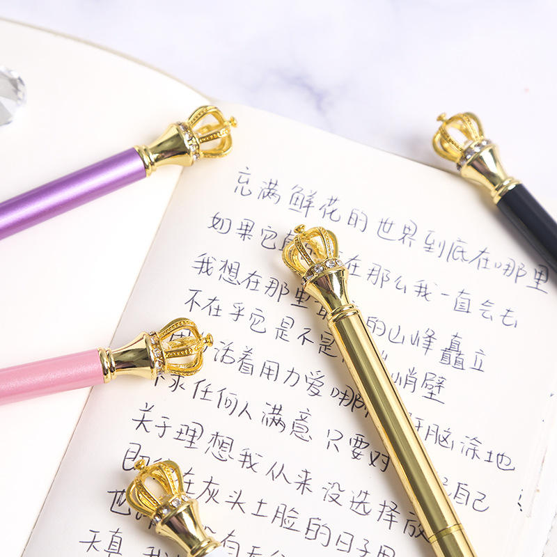 ปากกาลูกลื่นโลหะสีโรสโกลด์ ดีไซน์หรูหรา ทรงมงกุฎ แฟชั่นสร้างสรรค์