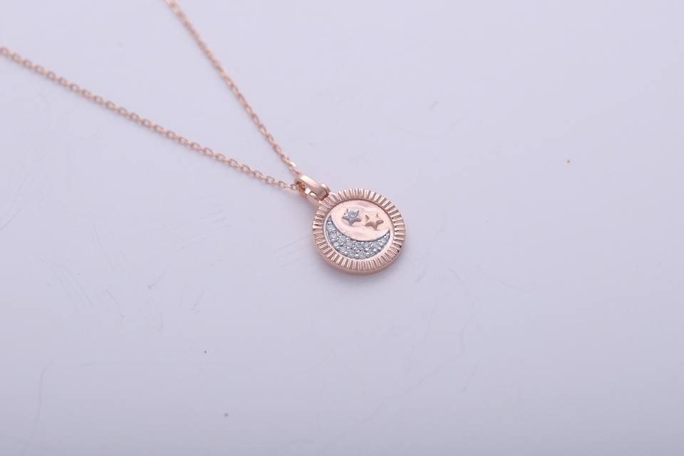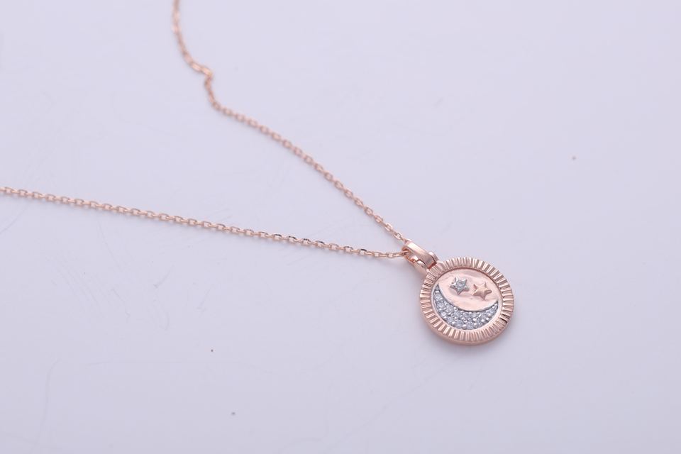 จี้รูปพระจันทร์เสี้ยวประดับดาว ดีไซน์ทันสมัย ทองคำ 9K สีโรส/ไวท์/เยลโลว์ ประดับเพชรแล็บโกรว์ ชุบโรเดียม