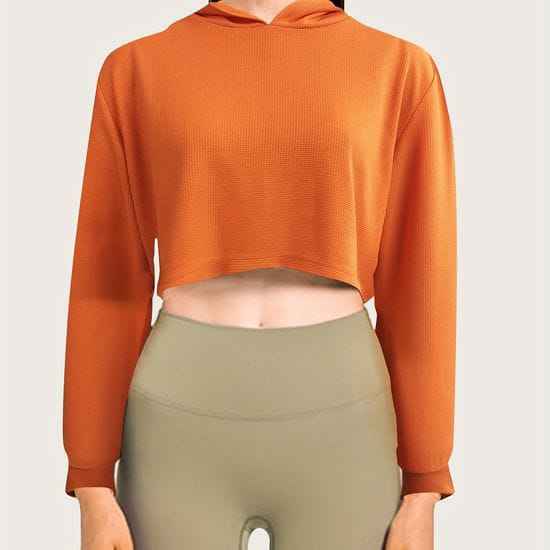 เสื้อฮู้ดครอปผู้หญิง สำหรับฤดูหนาวและฤดูใบไม้ผลิ เป็นมิตรกับสิ่งแวดล้อม แห้งเร็ว ผลิตจากผ้าสแปนเด็กซ์/โพลีเอสเตอร์ ออกแบบเองได้ ทรงโอเวอร์ไซส์ สำหรับออกกำลังกาย