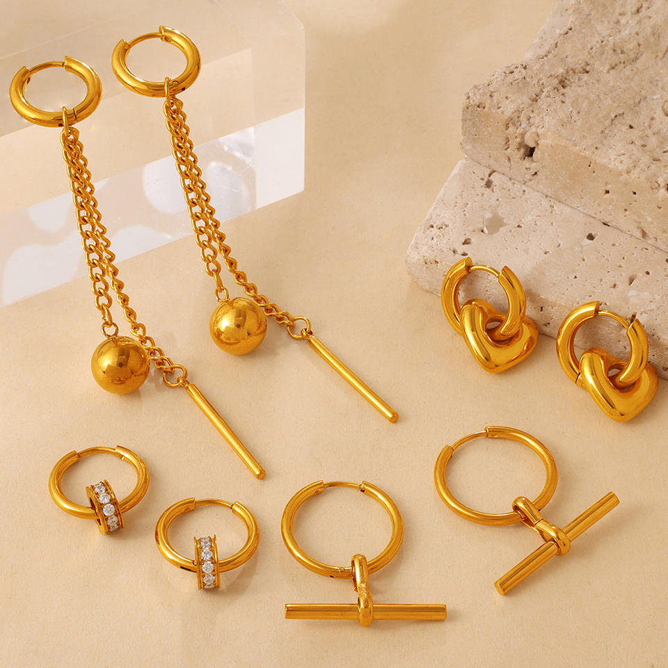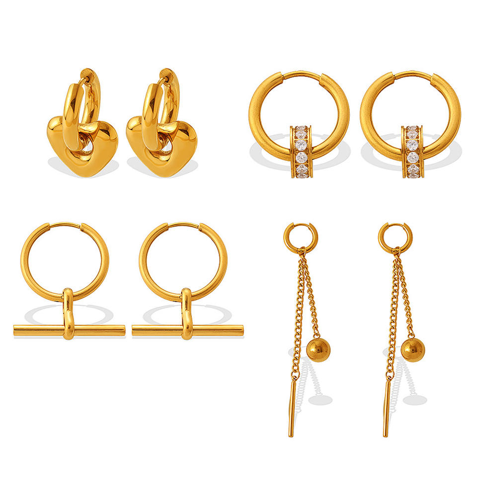 ต่างหูแฟชั่นรูปทรงเรขาคณิตรูปหัวใจโลหะผสมสังกะสีสแตนเลสต่างหูแบบหนีบดีไซน์หรูหราสำหรับสวมใส่ทุกวัน