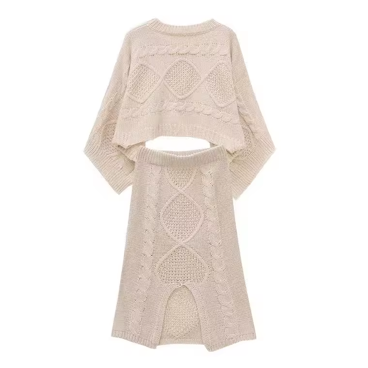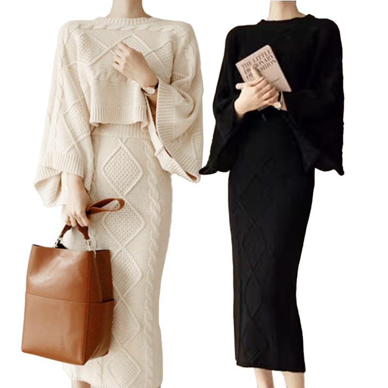 exquisite o neck design stylish skirt knit sweater two-piece suit