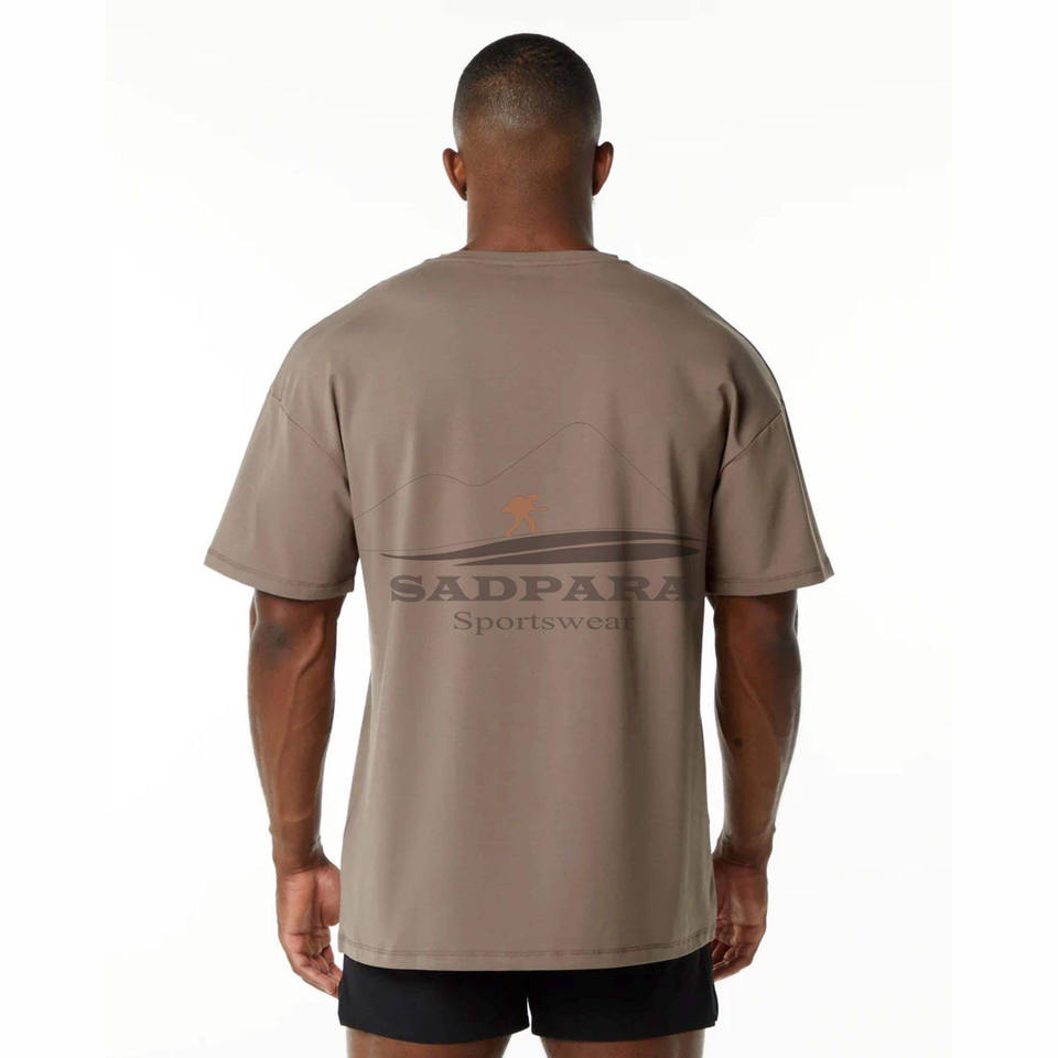 เสื้อยืดคอกลมผู้ชายแขนสั้นผ้าคอตตอนใส่เล่นกีฬาฟิตเนสสีพื้นทรงหลวมโลโก้แฟชั่นแบบออกแบบได้ตามต้องการ