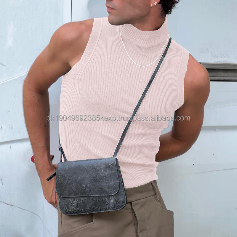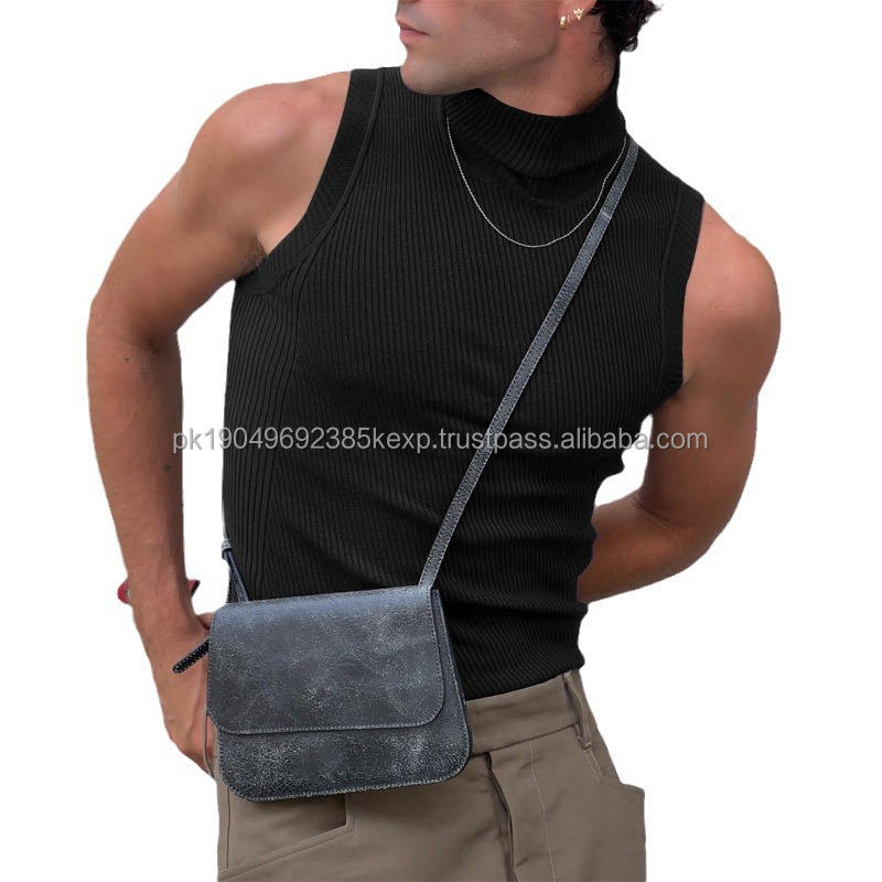 เสื้อกล้ามคอเต่าสำหรับผู้ชายเสื้อออกกำลังกายแขนกุดสีพื้นโลโก้ออกแบบได้ตามต้องการแฟชั่น