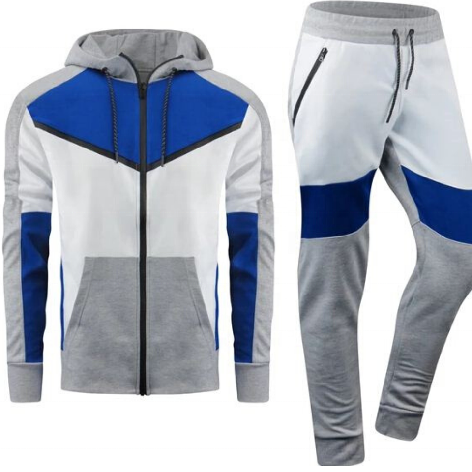 ชุดวิ่งออกกำลังกายแฟชั่นสำหรับผู้ชายชุดกันเหงื่อแบบมีหมวกบล็อคสี