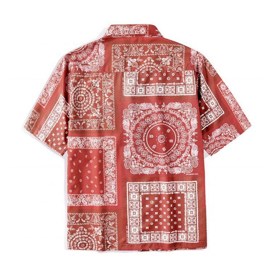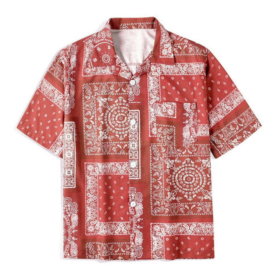 เสื้อยืดแฟชั่นผู้ชายลายดอกไม้สไตล์ลำลอง แขนสั้น ติดกระดุม ลายผ้าพันคอ พิมพ์ลายเพสลีย์ สำหรับผู้ชาย