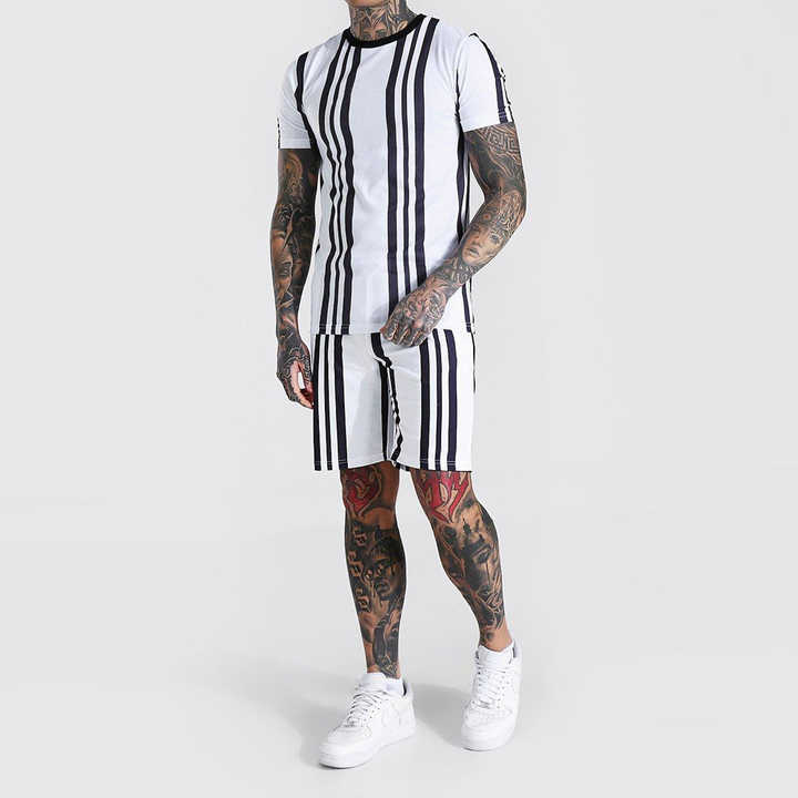 ชุดเซ็ตเสื้อยืดและกางเกงขาสั้นผู้ชายลายพิมพ์แฟชั่นสำหรับฤดูร้อน 2 ชิ้น ชุดเซ็ตเสื้อยืดและกางเกงขาสั้นผ้าฝ้าย