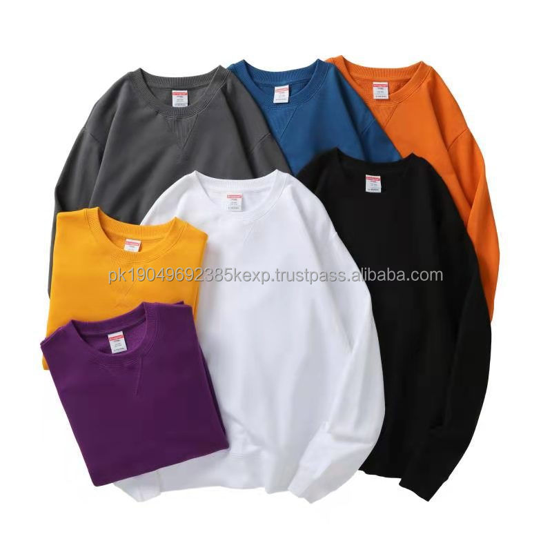 เสื้อสเวตเตอร์แฟชั่นผ้าคอตตอนแบบสวมหัวสำหรับผู้ชายเสื้อสเวตเตอร์แบบสวมหัวไม่มีฮู้ดแบบไม่มีเชือกผูกไม่มีกระเป๋าขอบ