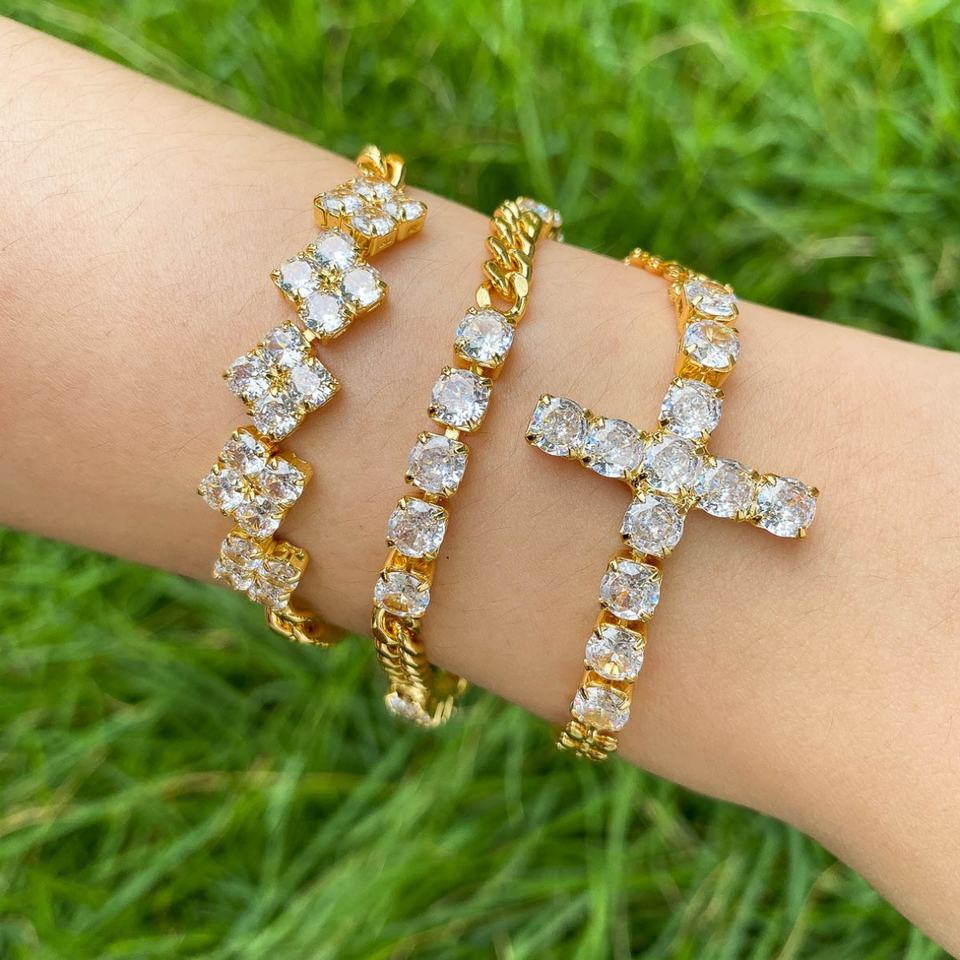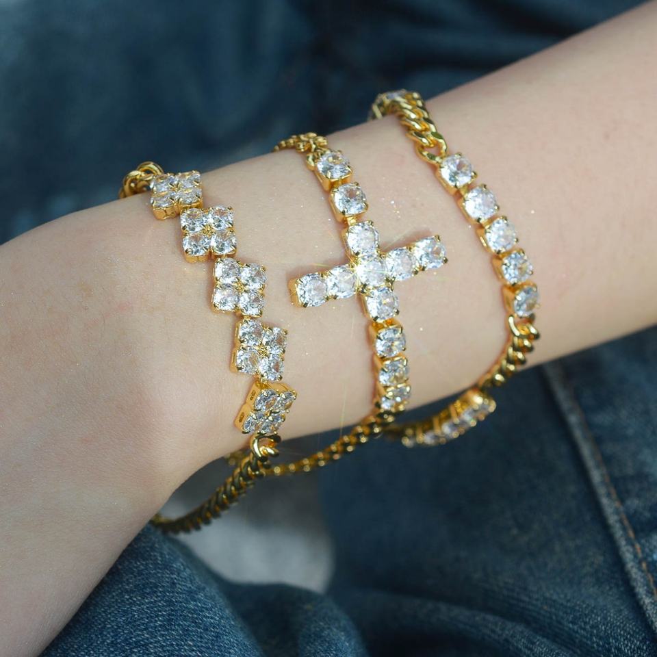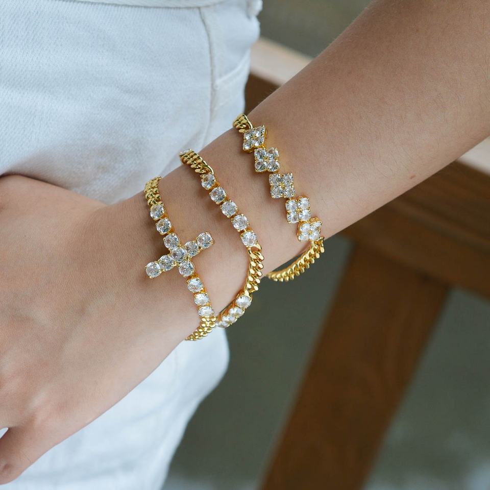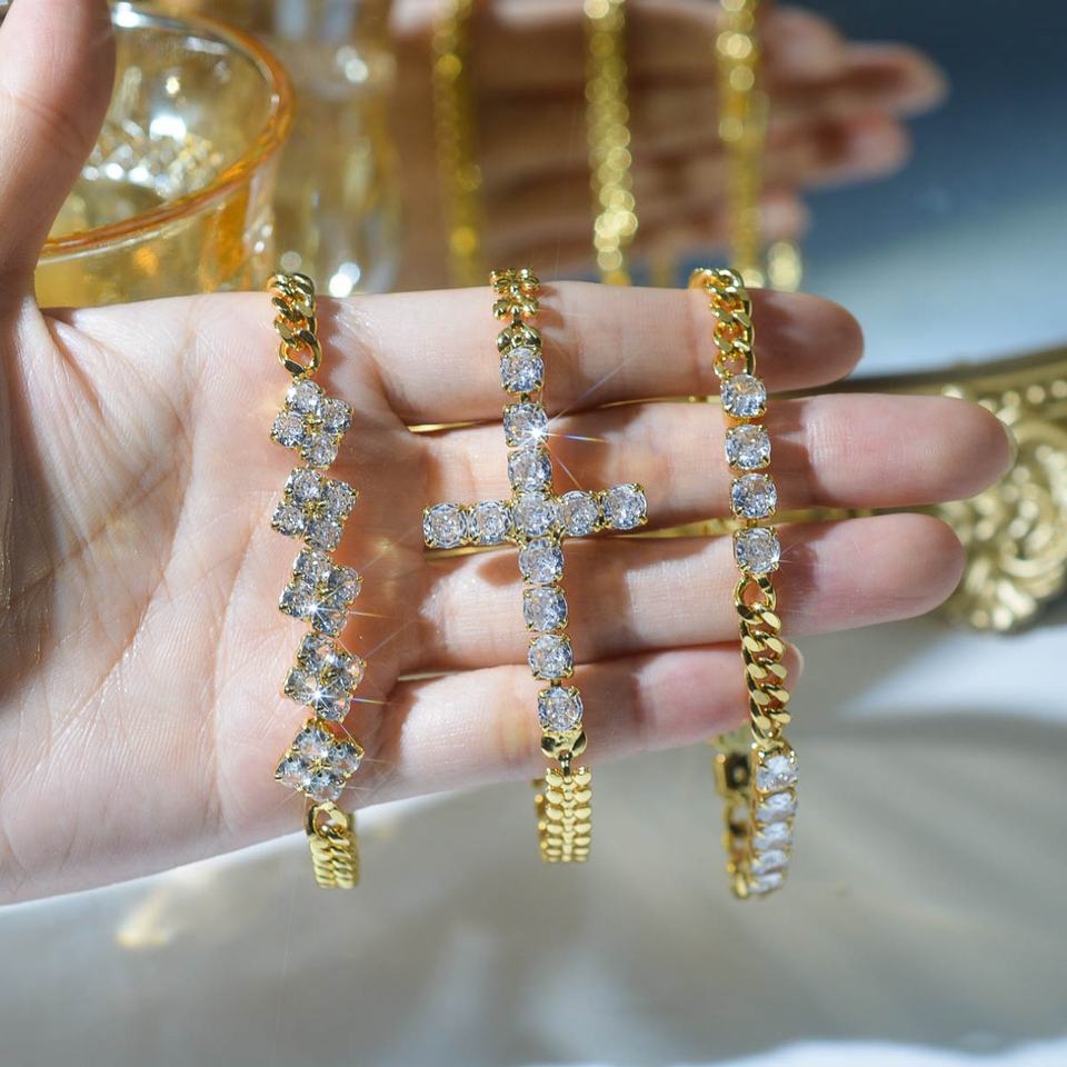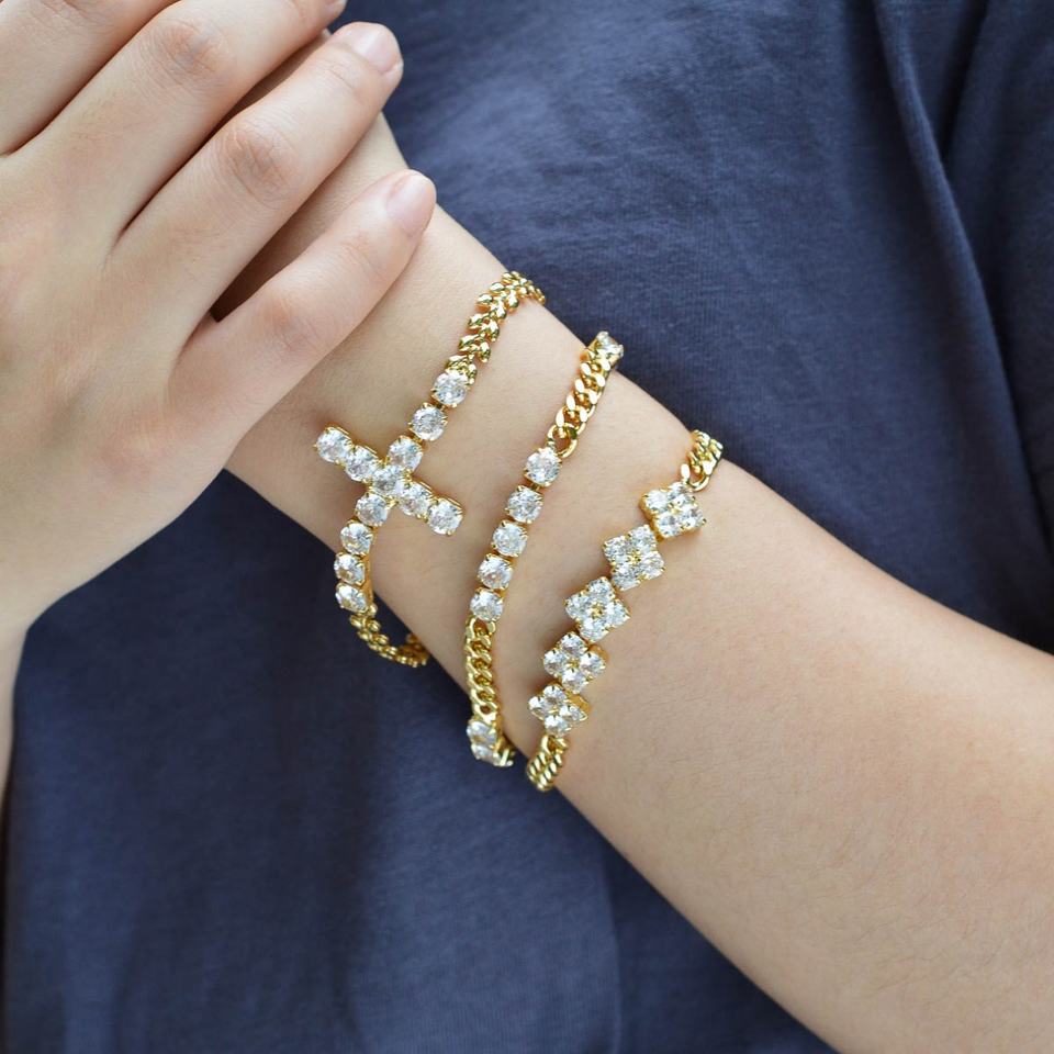กำไลข้อมือทองเหลืองประดับเพชรซิร์คอนแบบปรับแต่งได้สำหรับผู้หญิง ชุบทอง 14K ขายส่ง สำหรับวันครบรอบ