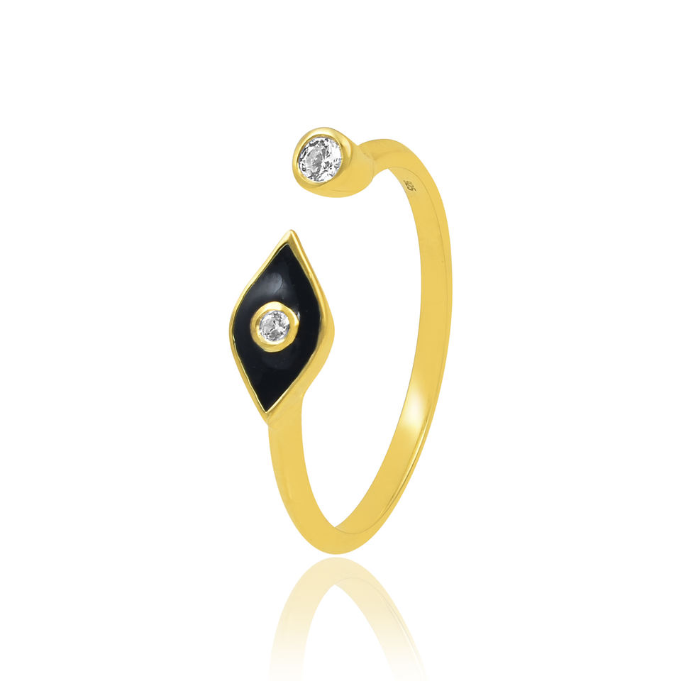 แหวนเงินอัญมณีปรับได้สำหรับ925ตาชั่วร้ายสีดำเคลือบสีทองแบบกำหนดเองตามแฟชั่น