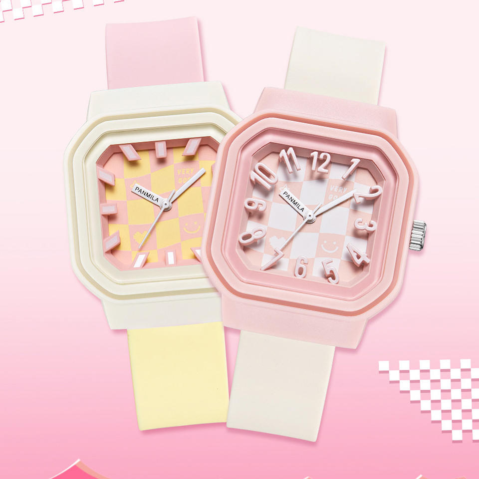 นาฬิกาเจลลี่แฟชั่นน่ารักหน้าปัดสี่เหลี่ยมอ่านง่ายกันน้ำนาฬิกาควอตซ์อะนาล็อกสำหรับผู้หญิงพร้อมสายซิลิโคนสีสันสดใส