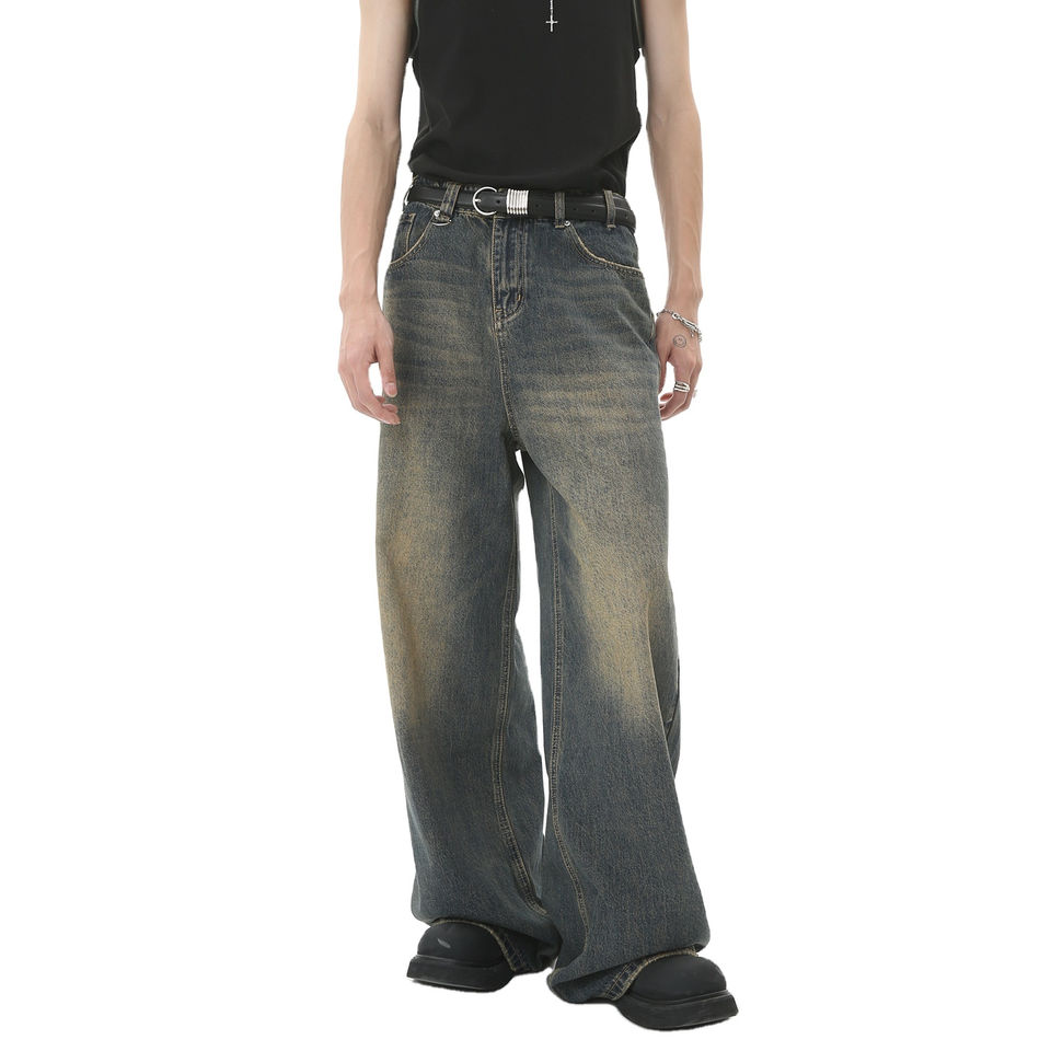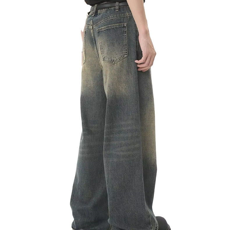 กางเกงยีนส์แฟชั่นกางเกงยีนส์ขาตรงขากว้างสำหรับผู้ชายขนาดพิเศษออกแบบได้เองสำหรับทุกเพศกางเกงมีสไตล์ทันสมัยมาก