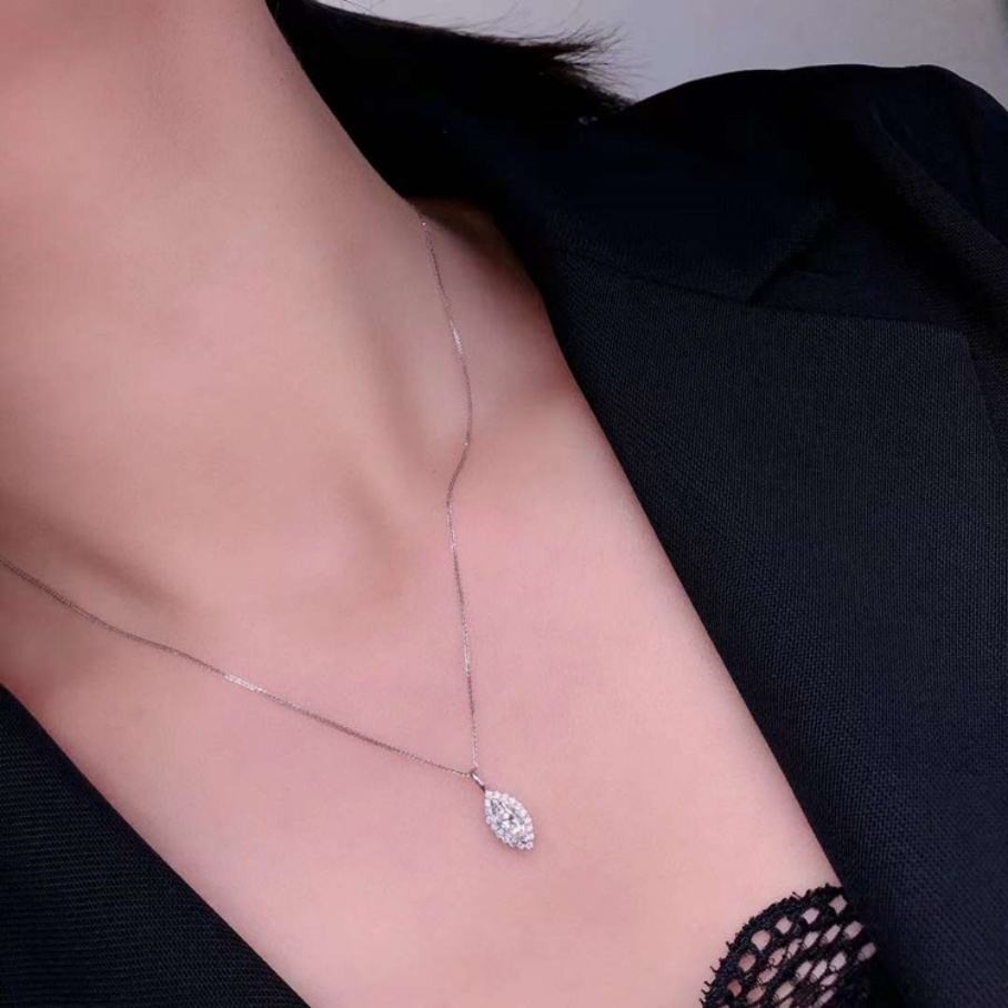 ชื่อ:จี้เครื่องประดับผู้หญิง ทองคำขาว 14K 18K ประดับมอยซาไนต์ทรงมาร์คีส์รูปดวงตา ขนาด 0.5 กะรัต