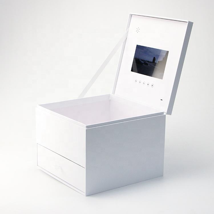 Fashion Design 7 Inch LCD Display Video Player White Double Video Drawer Box Flower Gift Packaging Matt Lamination Photo Frame
