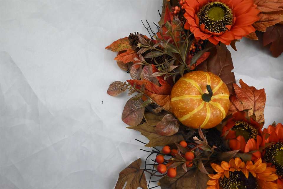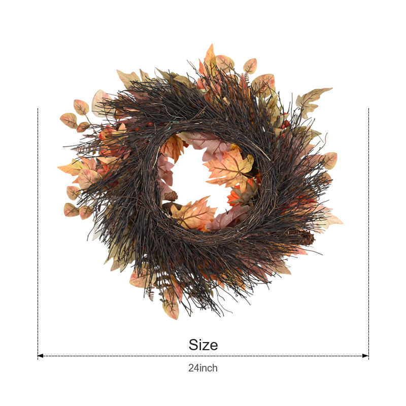 พวงหรีดฤดูใบไม้ร่วงใบไม้เมเปิ้ลเทียมดีไซน์ตามสมัยนิยมสำหรับใส่ฟักทองเบอร์รี่วันขอบคุณพระเจ้า