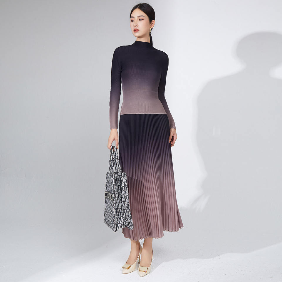เสื้อยืดมีจีบสำหรับผู้หญิง2024ไล่ระดับสีแบบแฟชั่นใหม่ชุดเดียวทรงสกินนี่เป็นมิตรต่อสิ่งแวดล้อม100% แห้งเร็ว