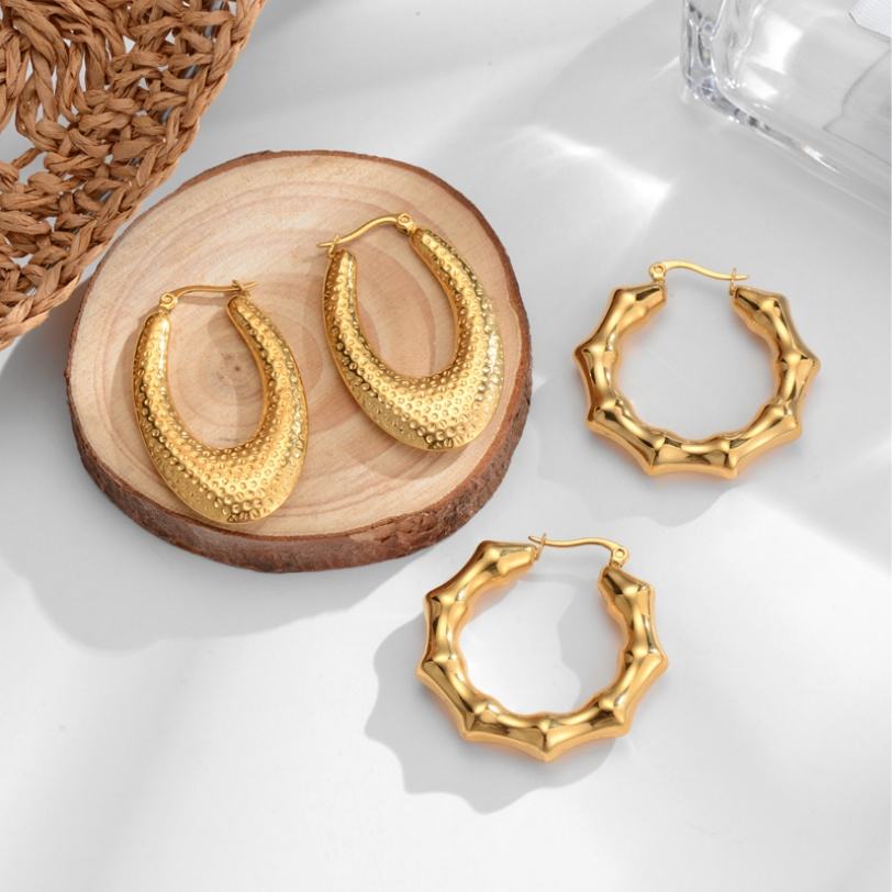 ต่างหูห่วงสแตนเลสสตีลชุบทอง 18K PVD คุณภาพสูง ดีไซน์แฟชั่น กันน้ำ ป้องกันอาการแพ้ สำหรับผู้หญิง ขายส่ง