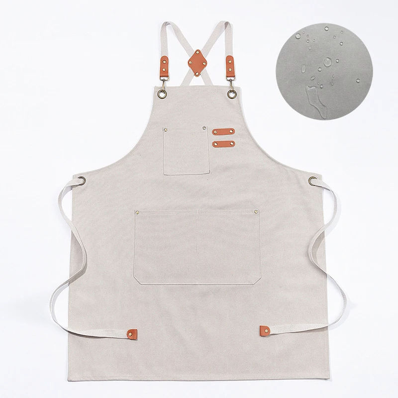 ผ้ากันเปื้อนผ้าแคนวาสใช้ในครัวพร้อมสายรัดปรับระดับได้