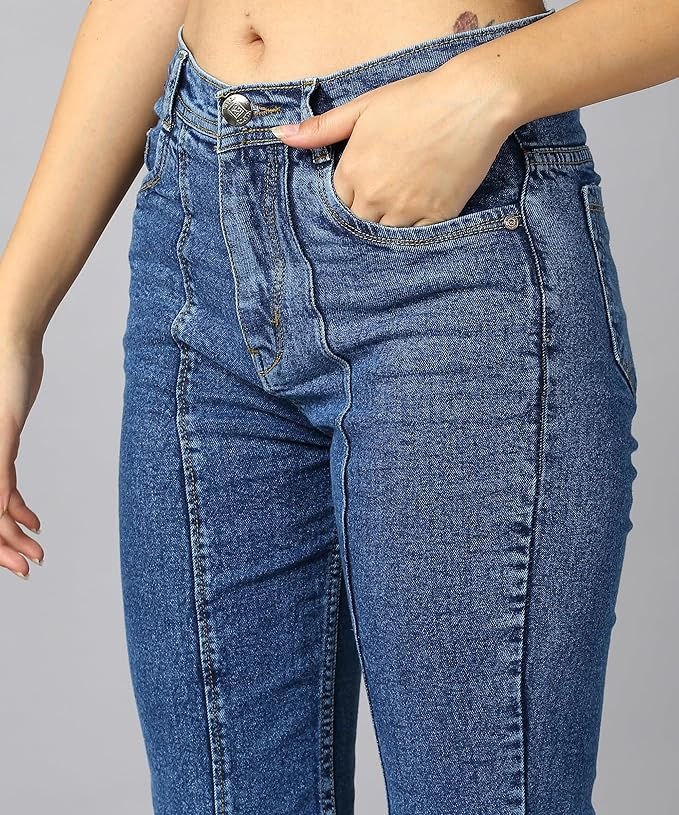 คีย์เวิร์ด:กางเกงยีนส์ทรงบานผ้ายีนส์ลำลองสำหรับผู้หญิง