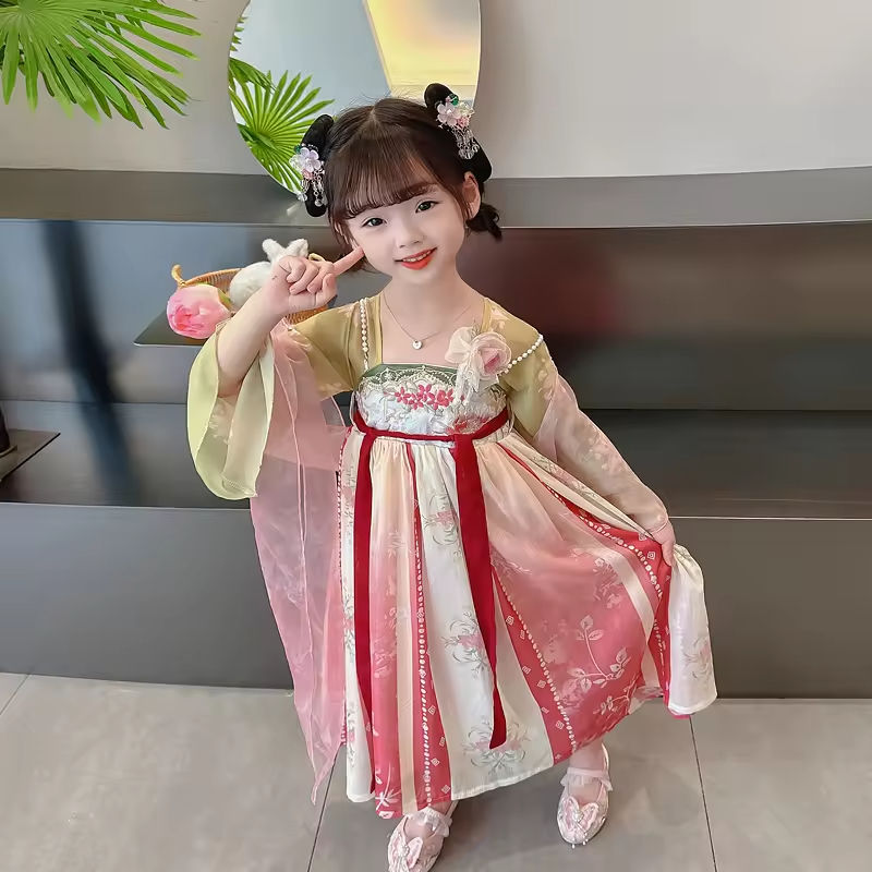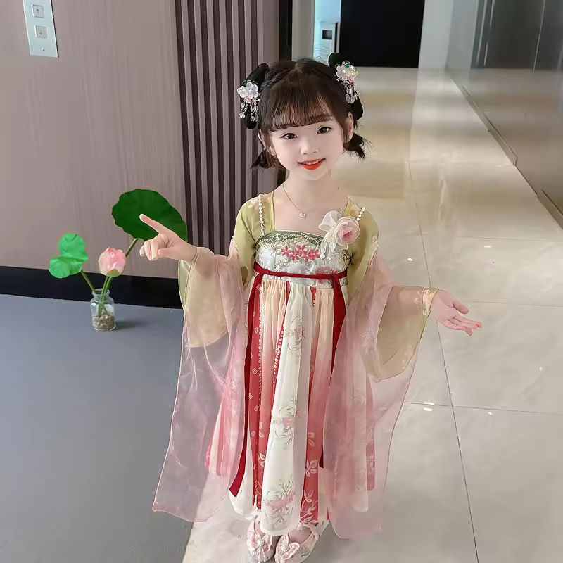 ชุดฮั่นฝูเด็กผู้หญิง ดีไซน์แฟชั่น สไตล์โบราณสุดหรู ชุดเจ้าหญิงแบบถัง สวมใส่สบาย ผลิตจากโพลีเอสเตอร์แบบจีนดั้งเดิม