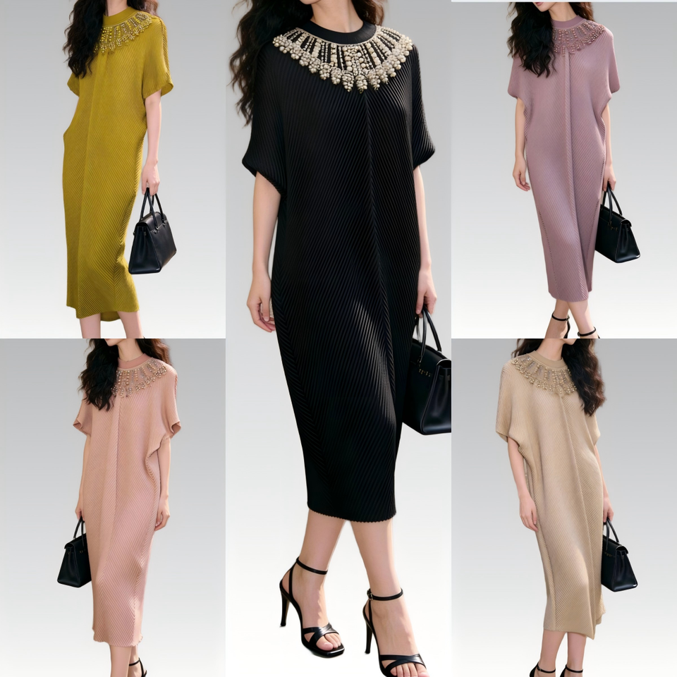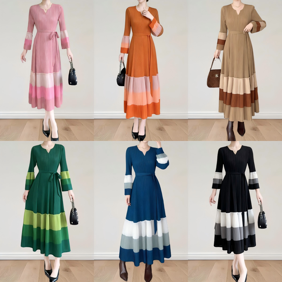 ชุดเดรสพลีทเรียบง่ายสีแดงล้วนสำหรับผู้หญิงไซส์ใหญ่ ขายส่งแฟชั่นดีไซน์ ชุดลำลองสไตล์เรียบหรูสำหรับใส่ไปโบสถ์ ไซส์ฟรี