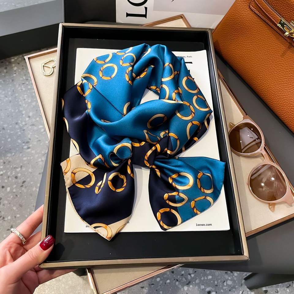 ผ้าพันคอไหมซาตินลายดอกไม้ ลายทาง ลายม้า สำหรับผู้หญิง ดีไซน์แฟชั่น ผ้าสองชั้น ขนาด 150*17 ซม.