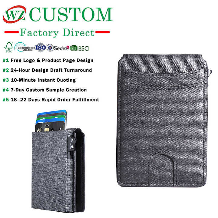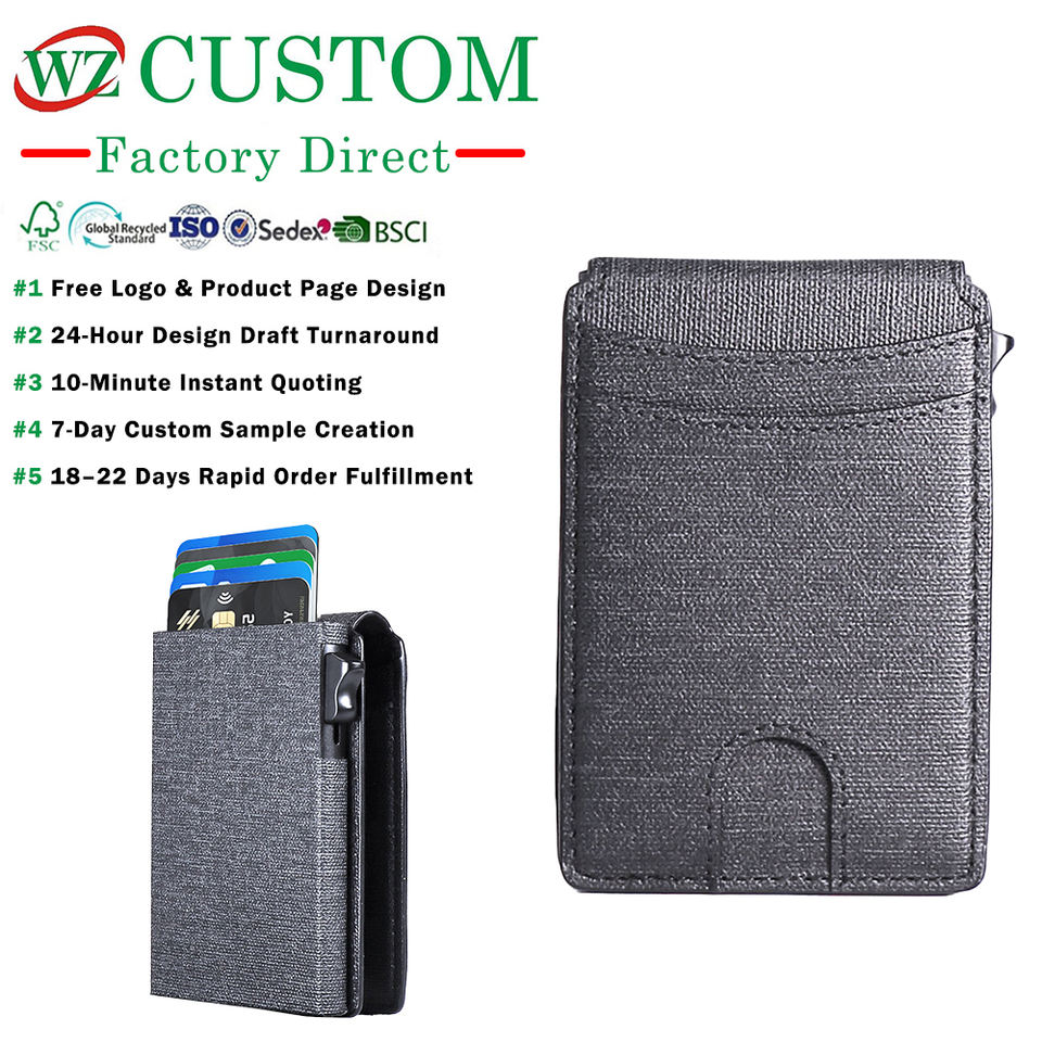 กระเป๋าสตางค์หนังผู้ชายแบบป้องกัน RFID สำหรับนักออกแบบแฟชั่น พร้อมบริการสลักโลโก้แบรนด์ ช่องใส่บัตรแบบป๊อปอัพ สำหรับใส่บัตรธุรกิจ