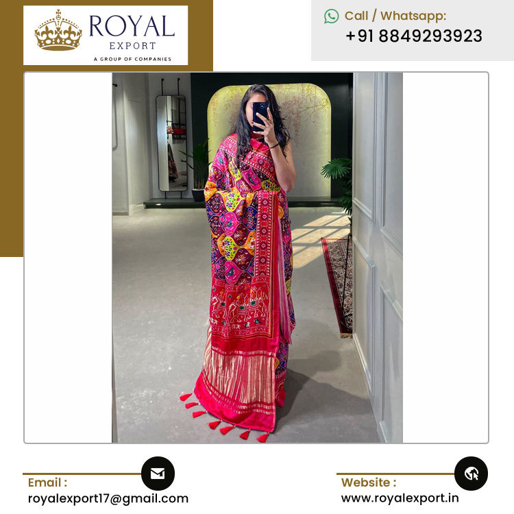 ชุดแต่งงานและปาร์ตี้ดีไซน์แฟชั่นชุดประจำชาติชุดส่าหรีผ้าไหมกาจิพิมพ์ลายปาโตลาและแลคาดิแพตตาโดยรอยัลส่งออก