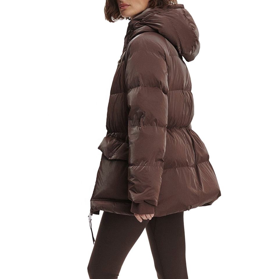 แจ็กเก็ตขนเป็ดแฟชั่นสำหรับผู้หญิงเสื้อโค้ทขนเป็ดมีกระเป๋ามีซิปสีน้ำตาลมีฮู้ดแจ็กเก็ตฤดูหนาวให้ความอบอุ่น