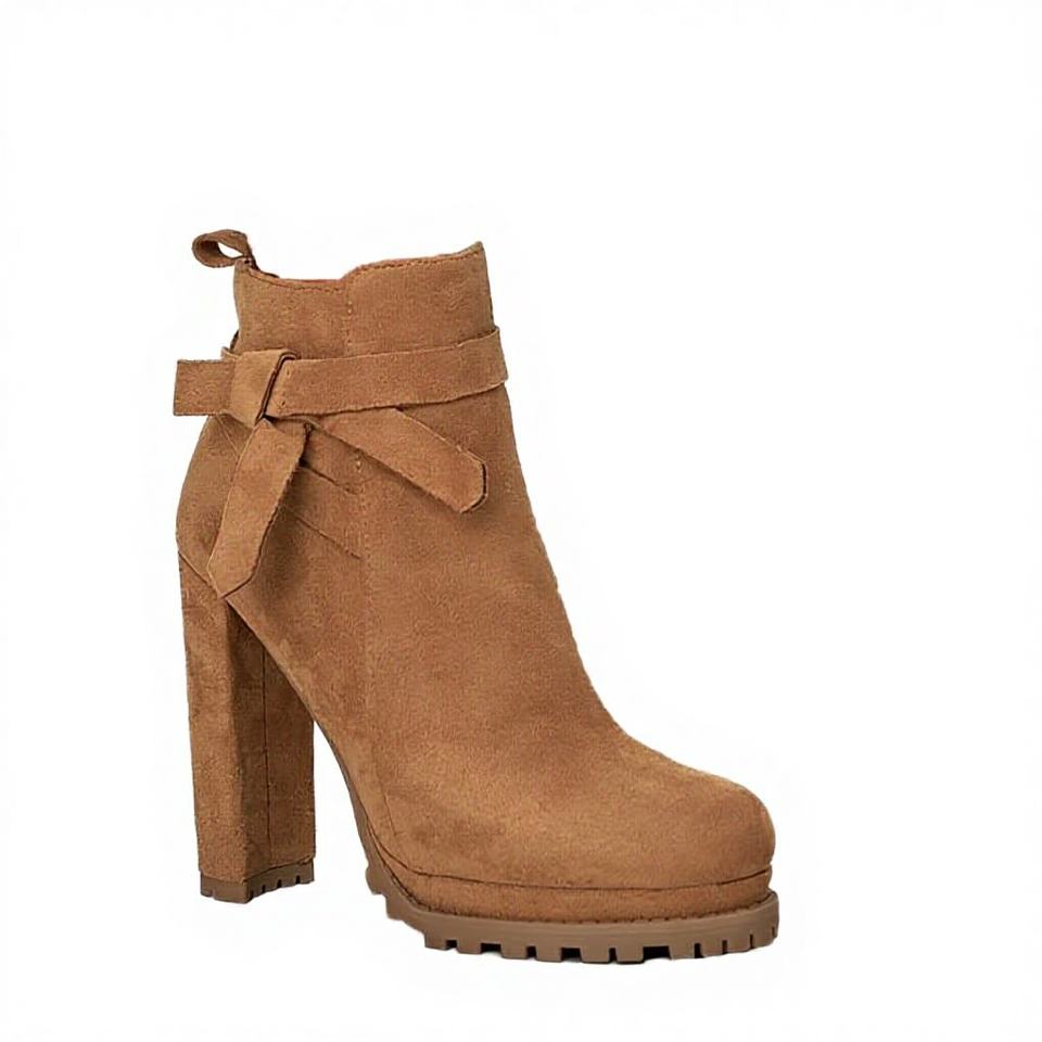 รองเท้าบูทข้อเท้าแบบมีซิป หนังกลับเทียมสีพื้น ส้นตึกสูง แต่งโบว์ สำหรับสุภาพสตรี แฟชั่นฤดูใบไม้ร่วงและฤดูหนาว