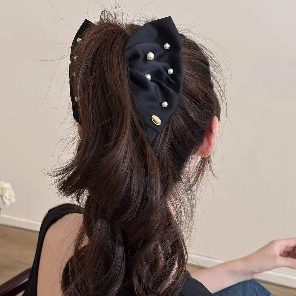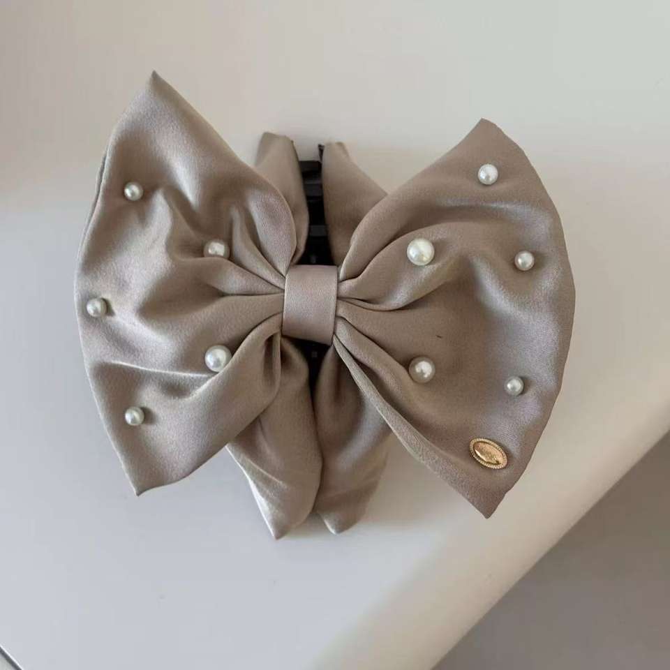 กิ๊บติดผมรูปโบว์ผ้าซาตินประดับมุกสุดหรูสำหรับผู้หญิงและเด็กผู้หญิง เครื่องประดับผมคุณภาพสูง