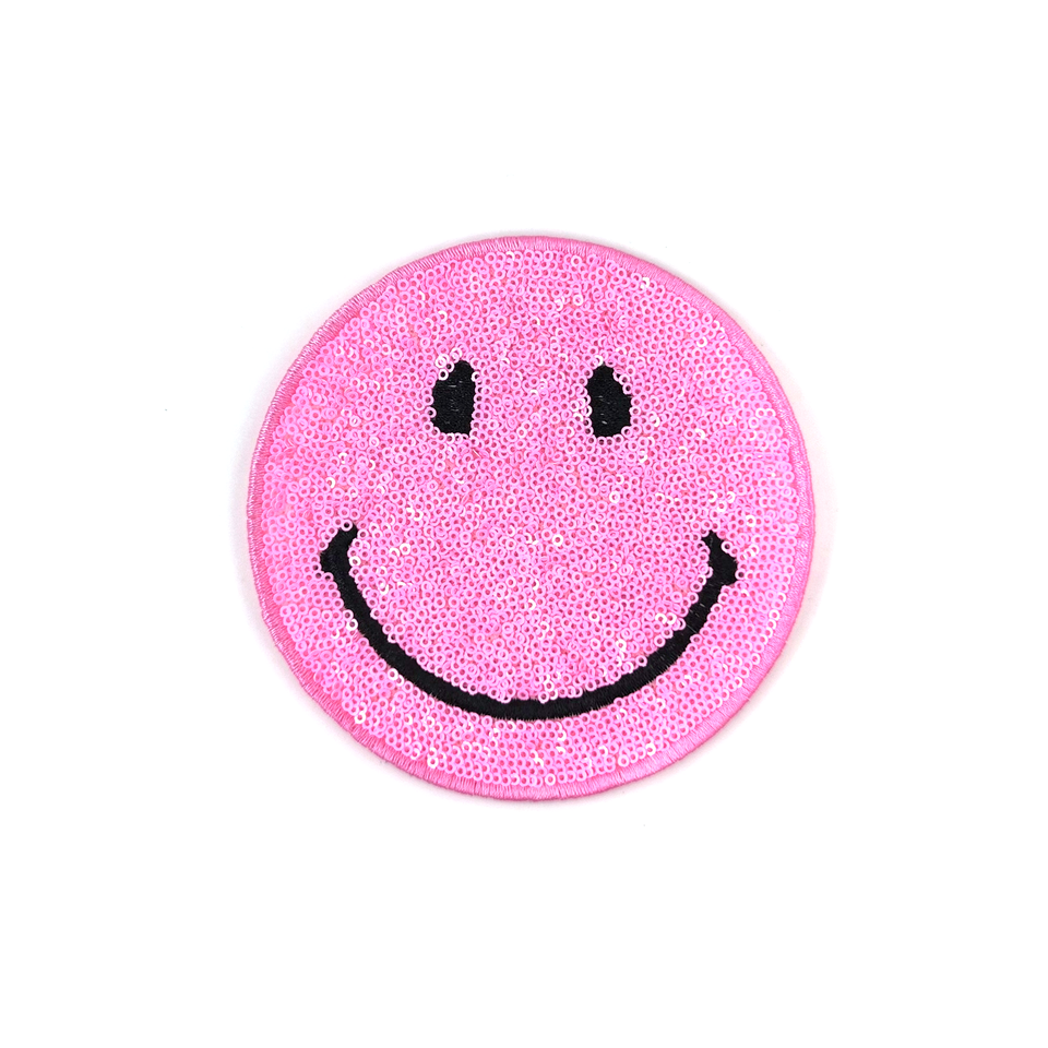 Fashion 3D Embroidered PVC Sequin Smile Face Sew-On Patch for DIY Clothing and Hats