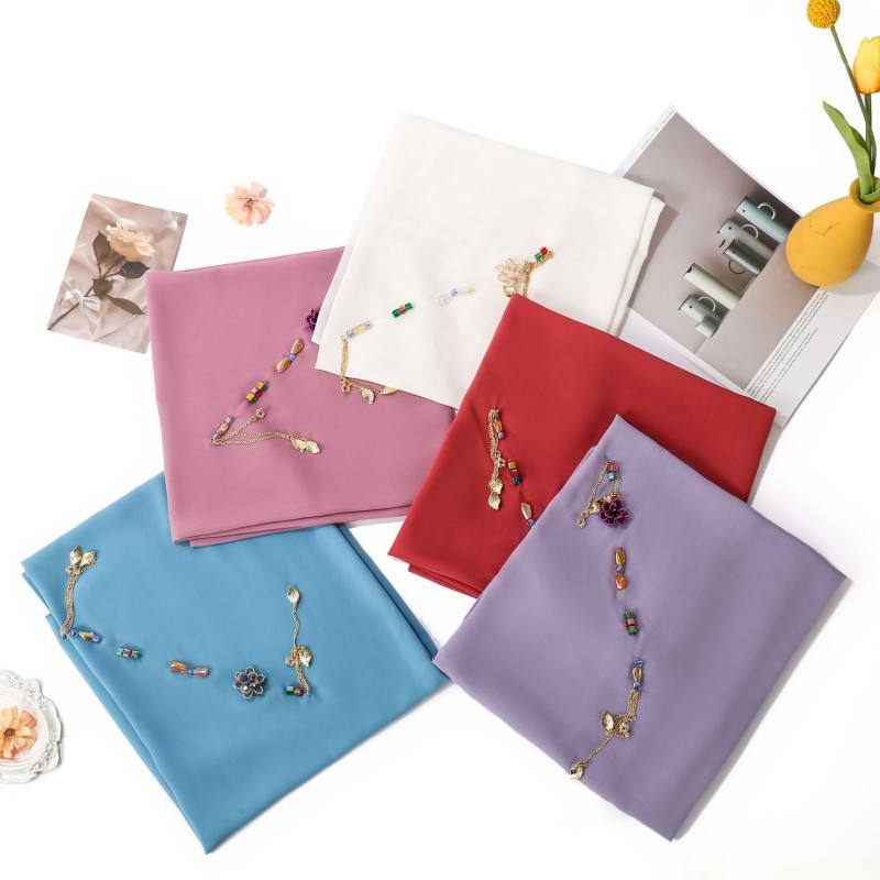 ฮิญาบแฟชั่นสตรีแบบชาวเผ่าฮิญาบประดับลูกปัดผ้าชีฟองระบายอากาศได้ดีมีสไตล์ผ้าพันคอมุสลิมทรงสี่เหลี่ยมผ้าโพกหัว