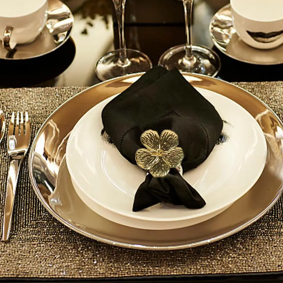 แหวนผ้าเช็ดปากทรงกลมเรียบง่ายทันสมัยลายดอกไม้แฟชั่นดีไซน์เรียบ