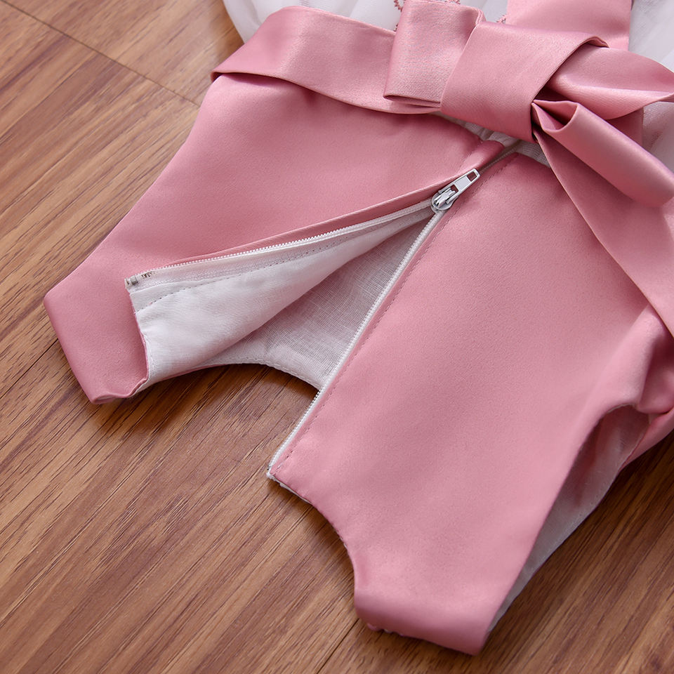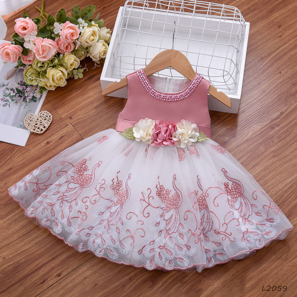 ชุดเดรสเด็กผู้หญิงสำหรับงานแต่งงาน ปักลายดอกไม้ คอประดับลูกปัด สไตล์แฟชั่นทางการ สำหรับเด็กวัยหัดเดิน งานวันเกิดครบรอบ 1 ขวบ