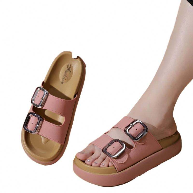 รองเท้าแตะพื้นเรียบแฟชั่นสำหรับผู้หญิง ปี 2025 ไซส์ใหญ่ ดีไซน์ใหม่ พื้นคอร์ก รองเท้าชายหาด ไซส์ใหญ่