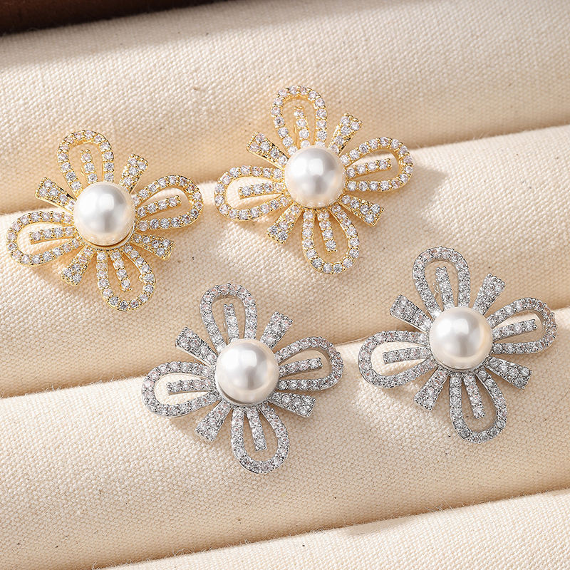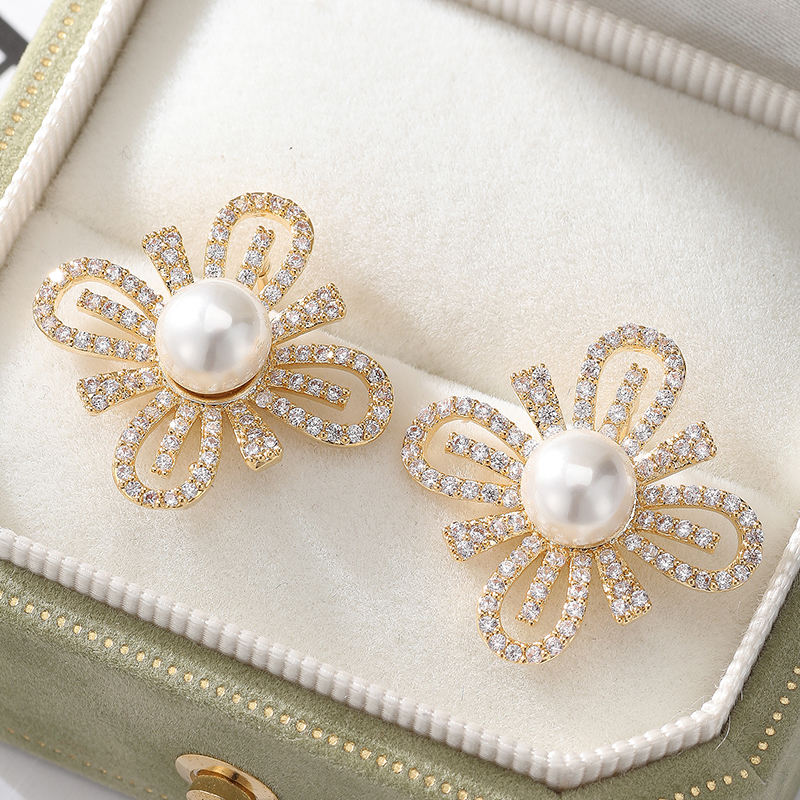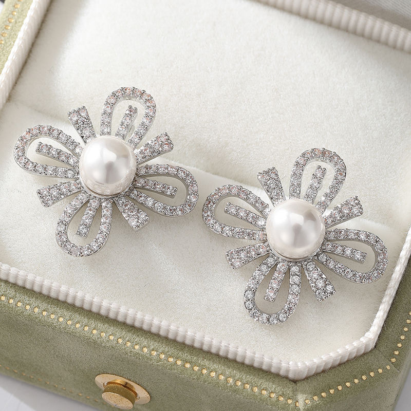 ต่างหูแฟชั่นสำหรับผู้หญิงต่างหูเพชรเม็ดกลมสีขาวไข่มุกเม็ดกลมสีขาวหรูหราต่างหูเจ้าสาวสำหรับงานแต่งงาน
