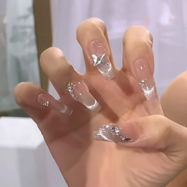 เล็บปลอมแฟชั่นสไตล์ฝรั่งเศส ได้รับการรับรองมาตรฐาน CE แบบใส ขายส่ง ทำมือทั้งชุด รูปทรงสี่เหลี่ยม/ทรงโลงศพ ครึ่งเล็บ