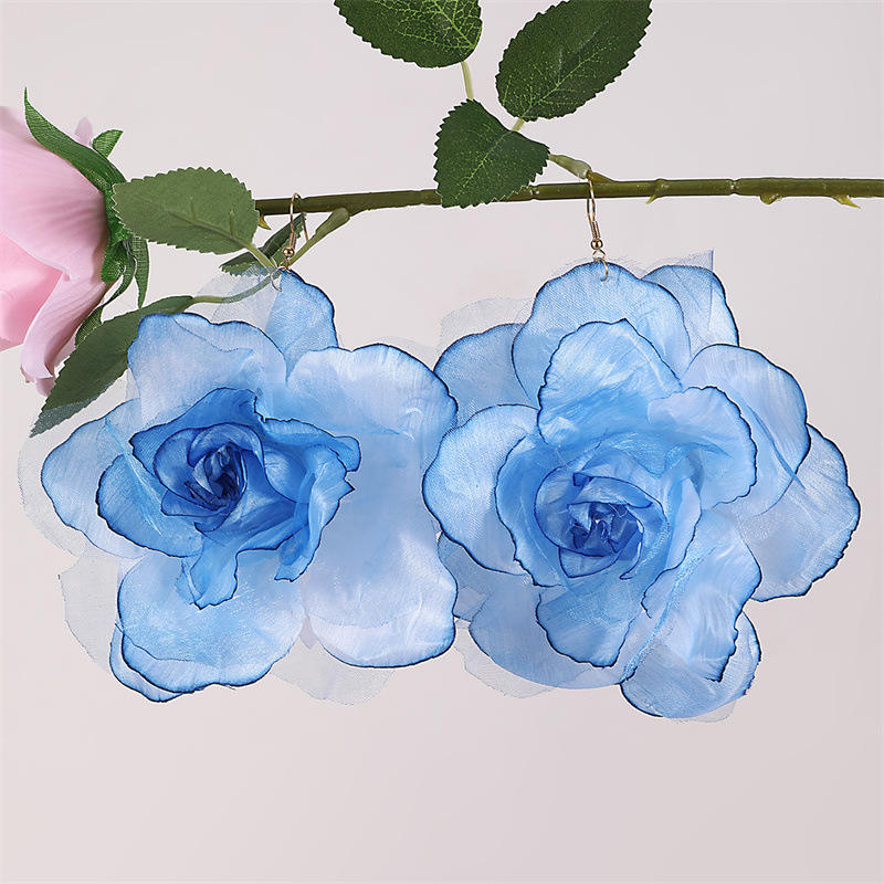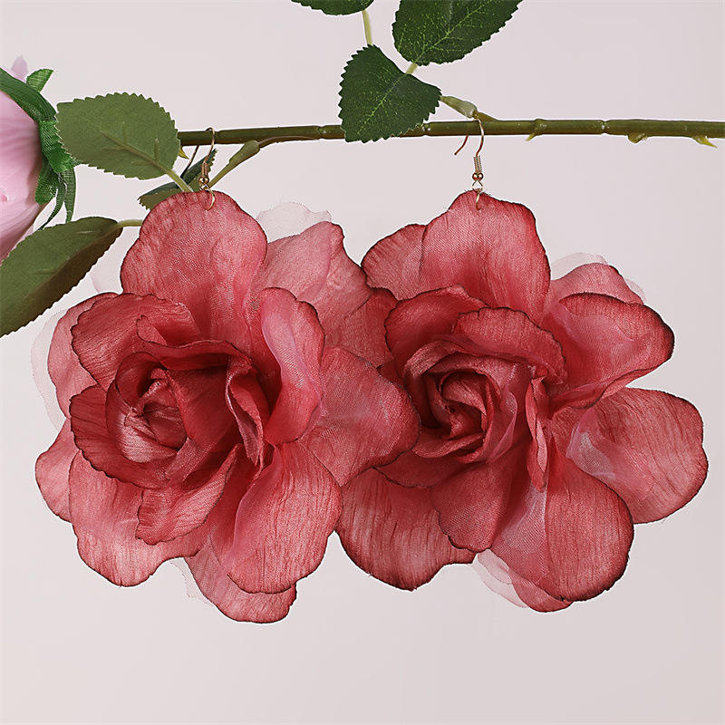 แฟชั่นสีสดผ้าต่างหูดอกกุหลาบขนาดใหญ่ใบหวานรูปหัวใจหยดไข่มุกต่างหูพู่ลูกปัดเครื่องประดับผู้หญิง