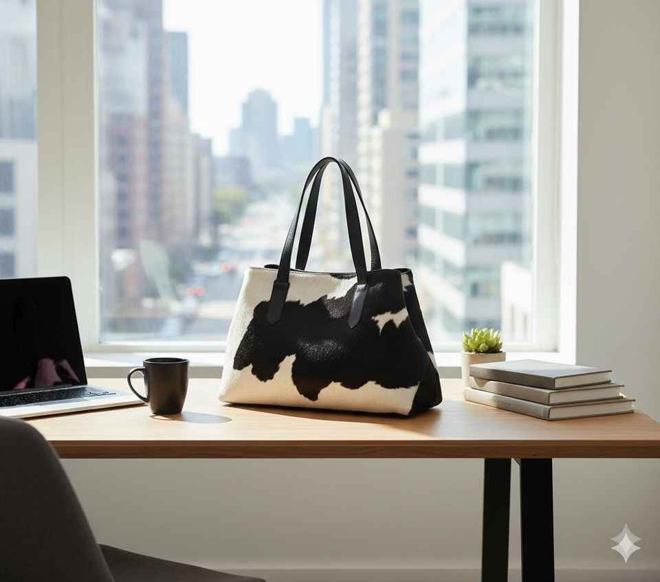 กระเป๋าโท้ทหนังแท้ลายขนสัตว์ พร้อมงานปักสีพื้น ปิดด้วยซิป สำหรับสุภาพสตรี รุ่น LHTB-0015