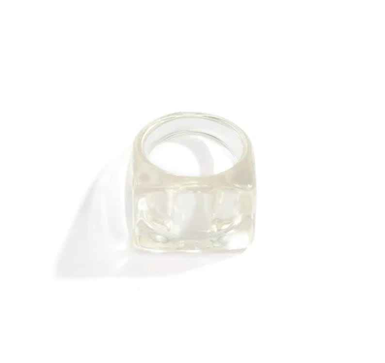 แหวนแฟชั่นทรงสี่เหลี่ยมทำจากเรซิ่นสีสันสดใสทรงเรขาคณิตเครื่องประดับสำหรับผู้หญิงขายส่ง