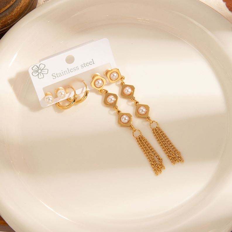 ต่างหูไทเทเนียมลูกปัดทรงกลมแฟชั่นทรงเรขาคณิตต่างหูสเตนเลสดีไซน์หลากหลายสำหรับผู้หญิง